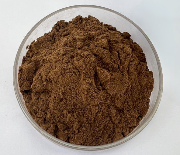 Raw materials crushed, extracted, concentrated and spray-dried to powder |